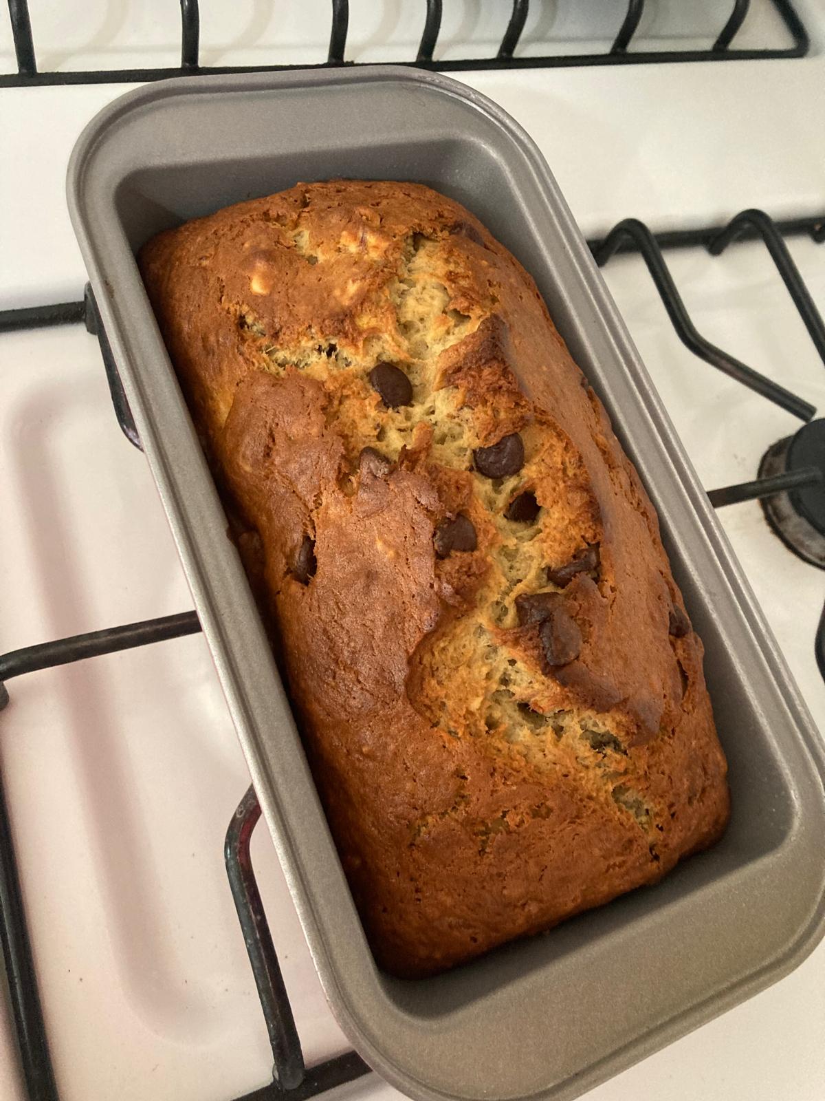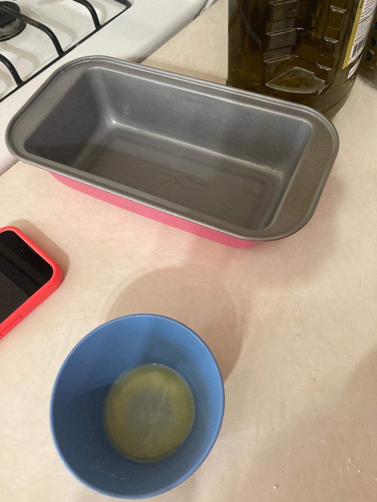 - Use a little bit more of melted butter to spread on the loaf pan so that the dough doesn't stick. Pour the mix in there and bake at 350 degrees Fahrenheit for 1h.