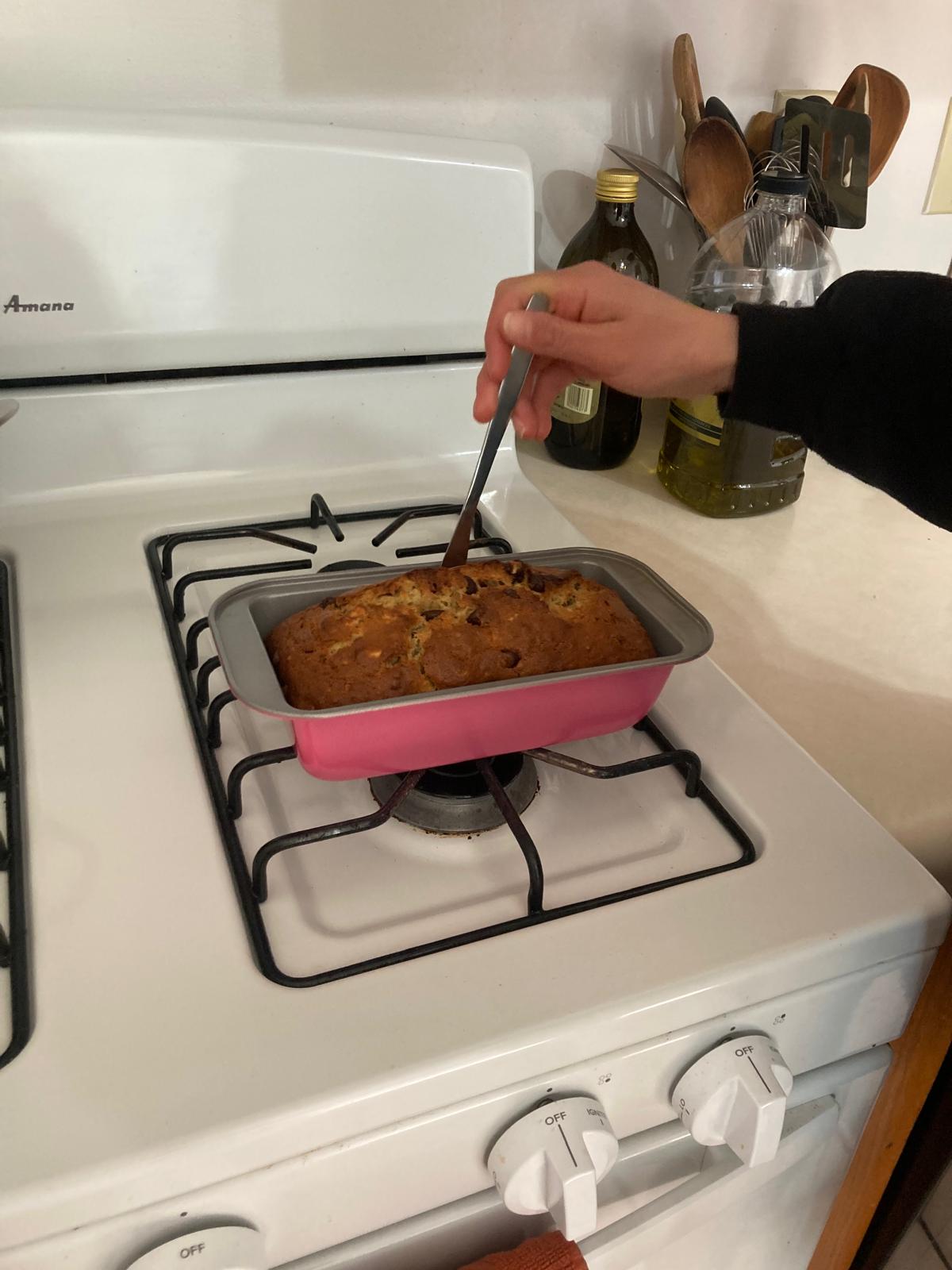 - Take ou of the oven and make sure it's cooked by sticking a fork through it. If it comes out clean, it's ready.