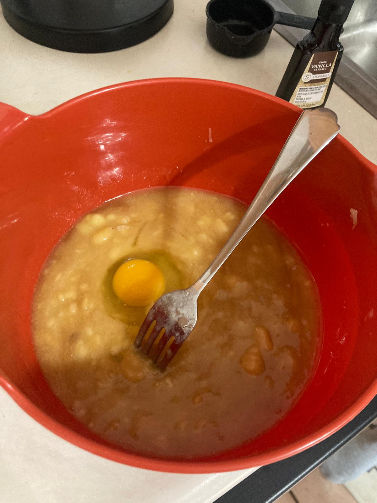 - Add the egg and lightly beat it in the mix.