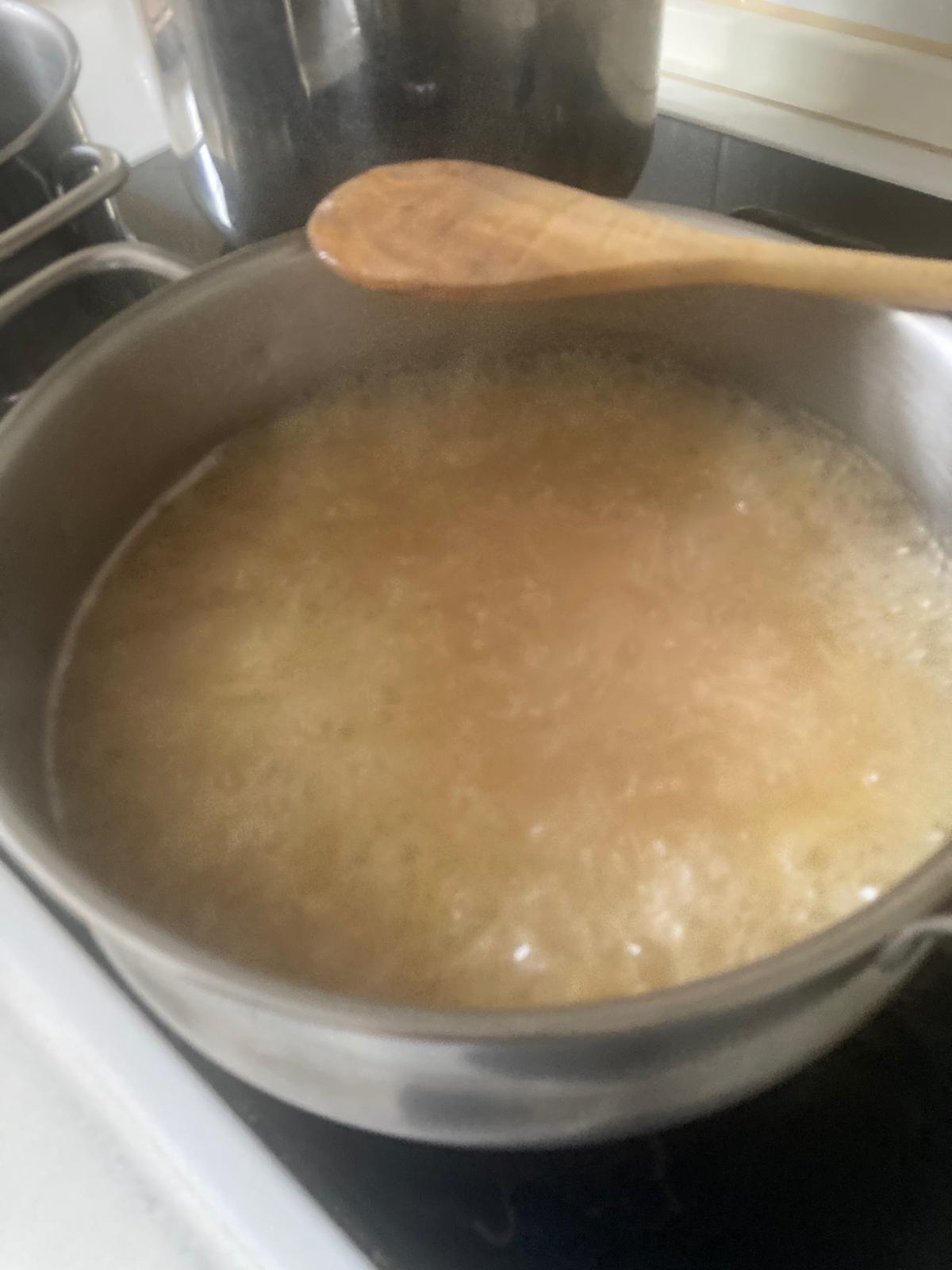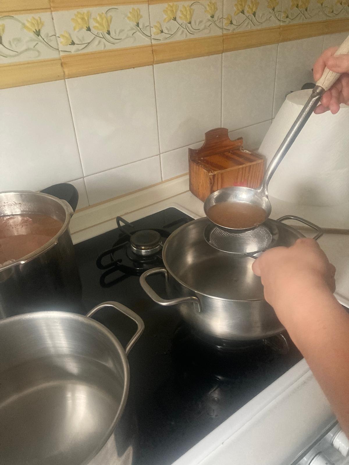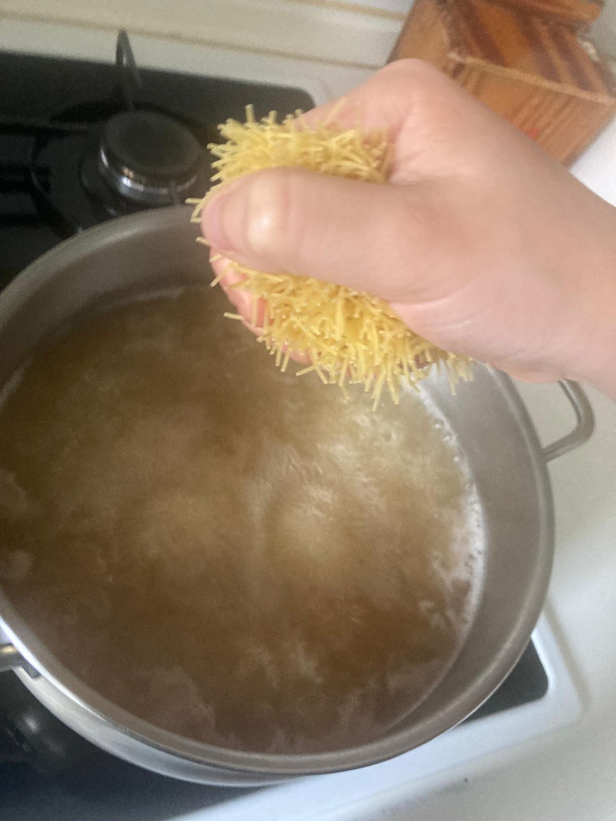 - Colamos el caldo para hacer la sopa. lo ponemos a fuego medio y echamos 1 o 2 puñados de fideos, esperamos a que se hagan y retiramos.