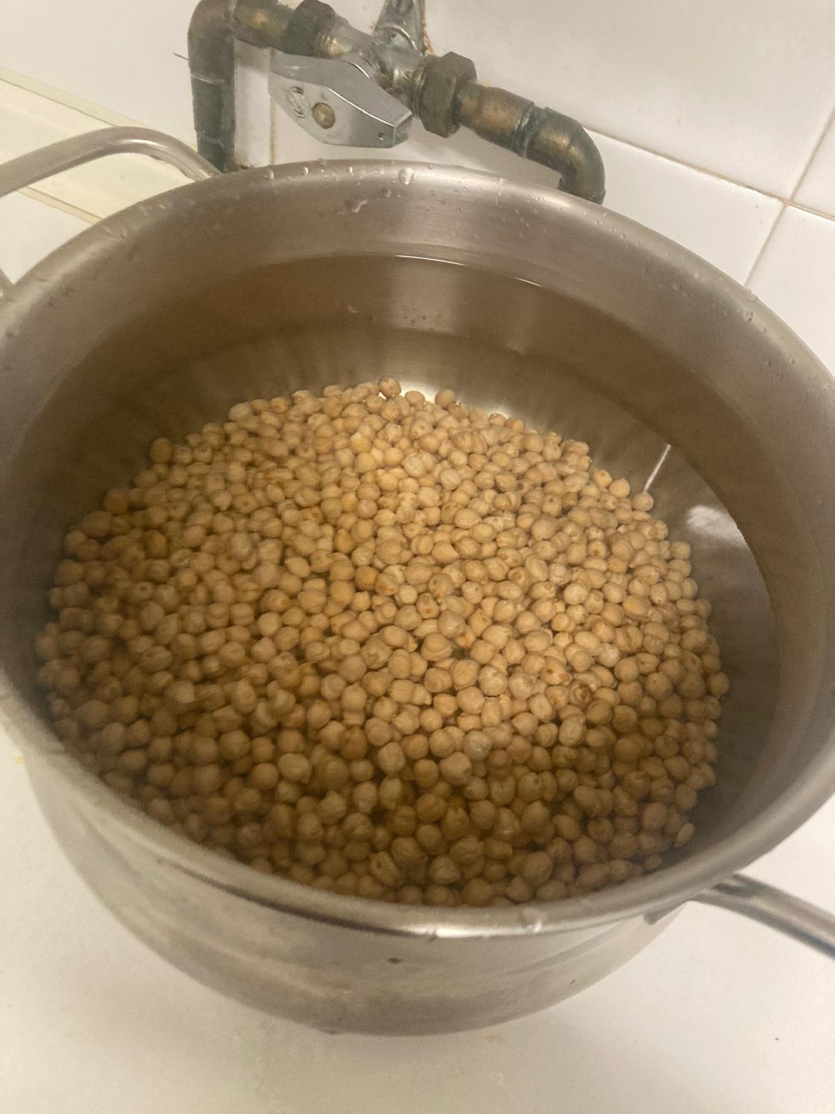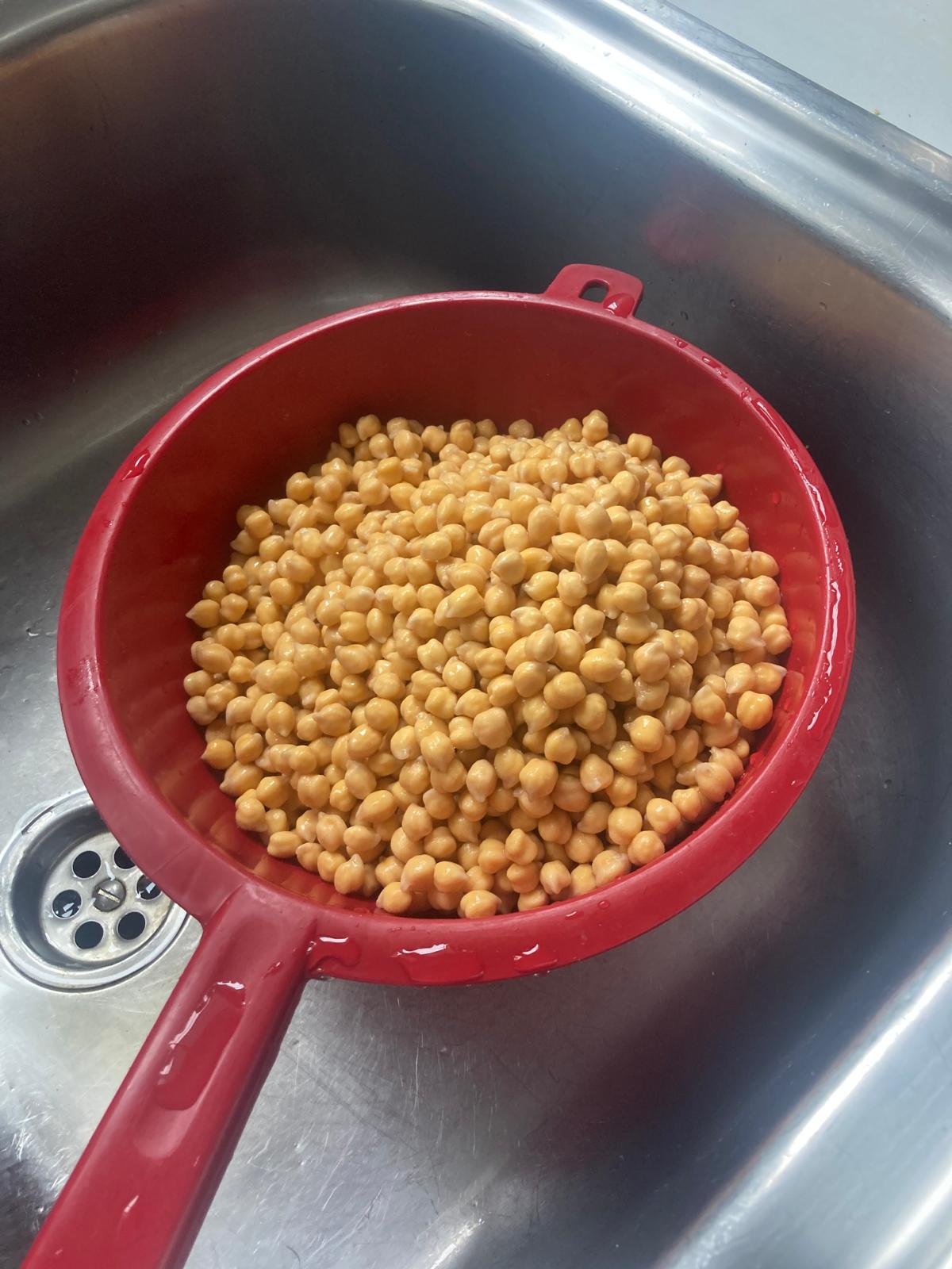 - Escurrimos los garbanzos y ponemos todos los que podamos en una malla.