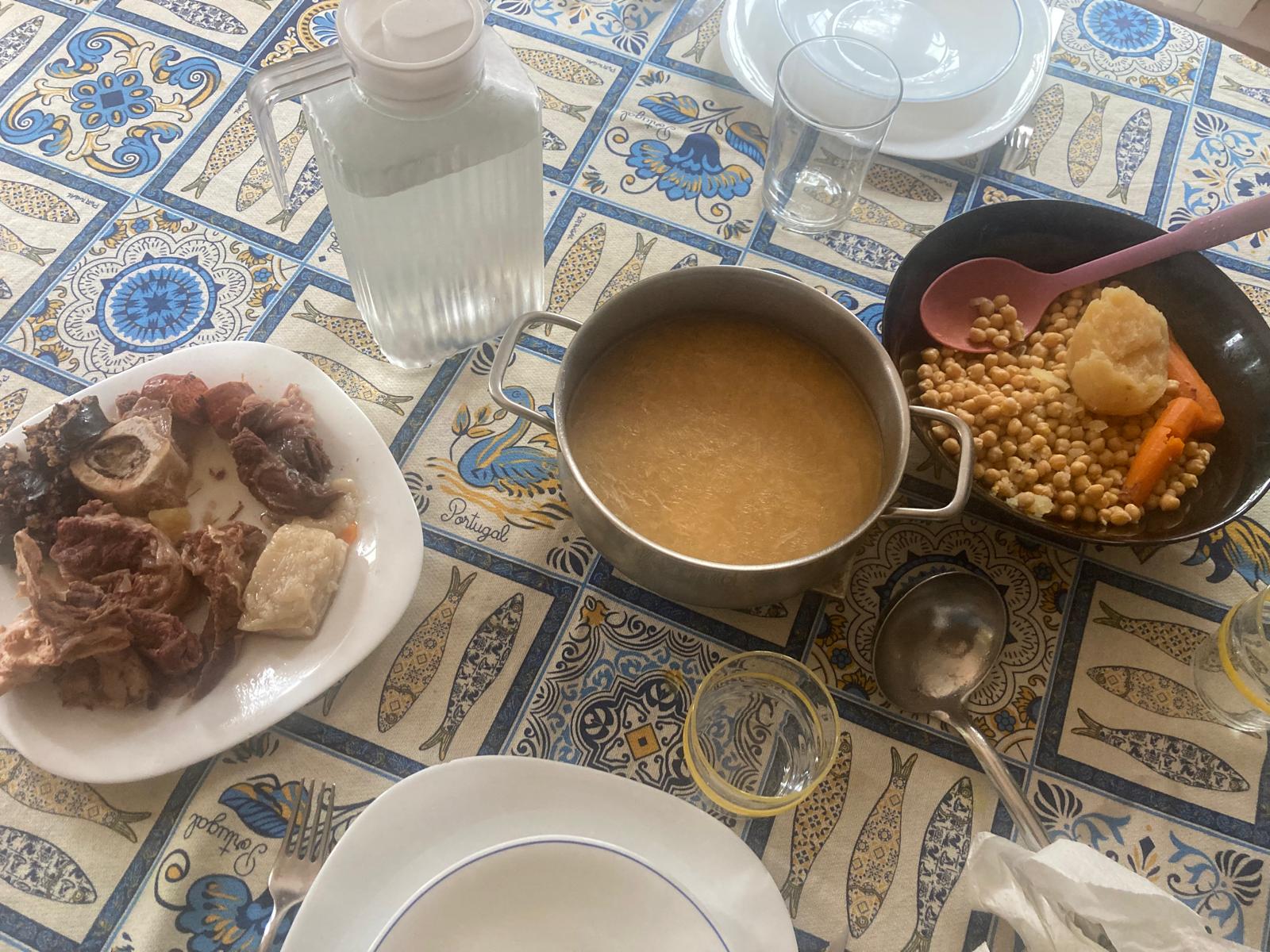- Sacamos los garbanzos, la patata y la zanahoria y los ponemos en un recipiente para servir.
