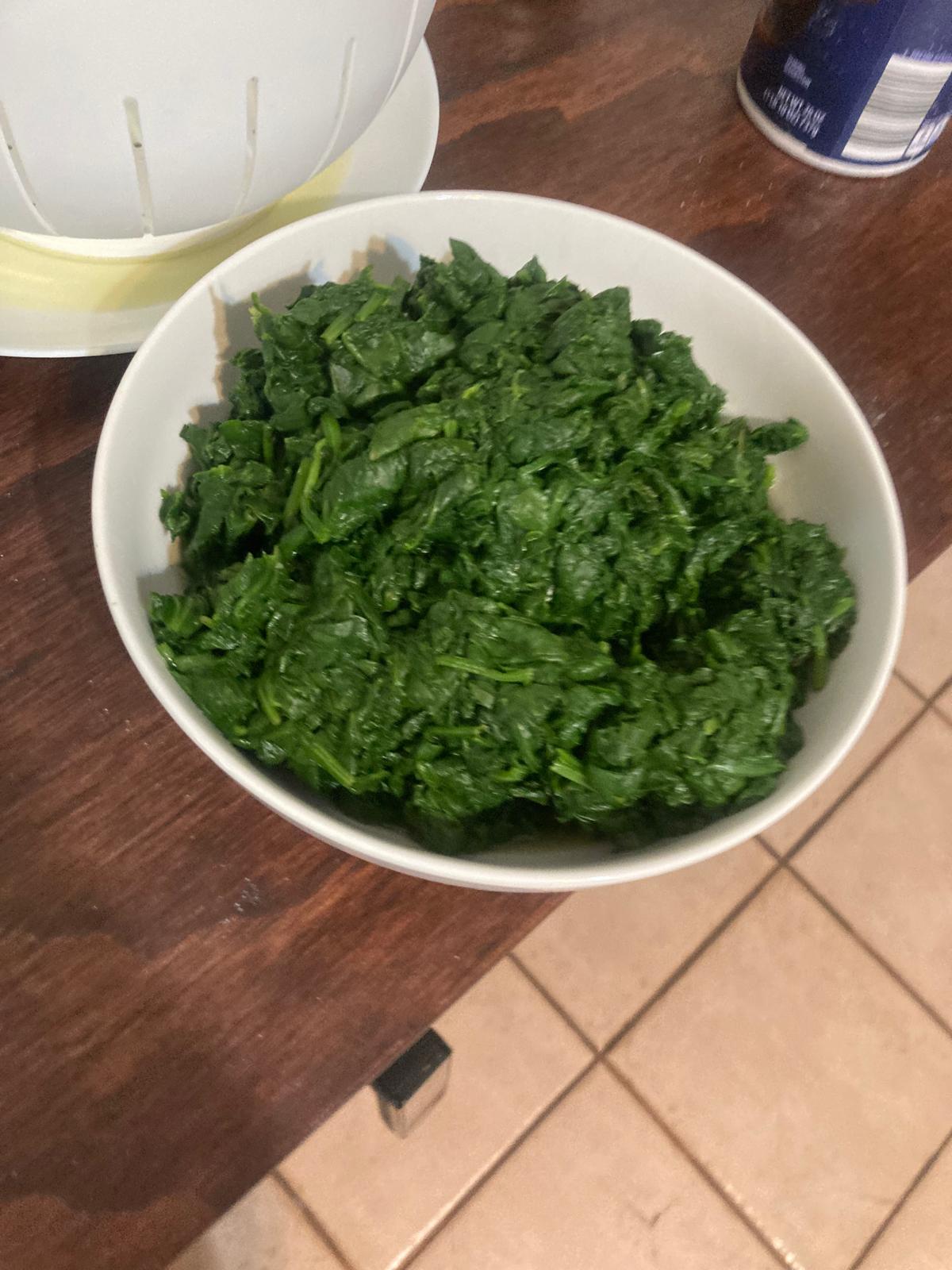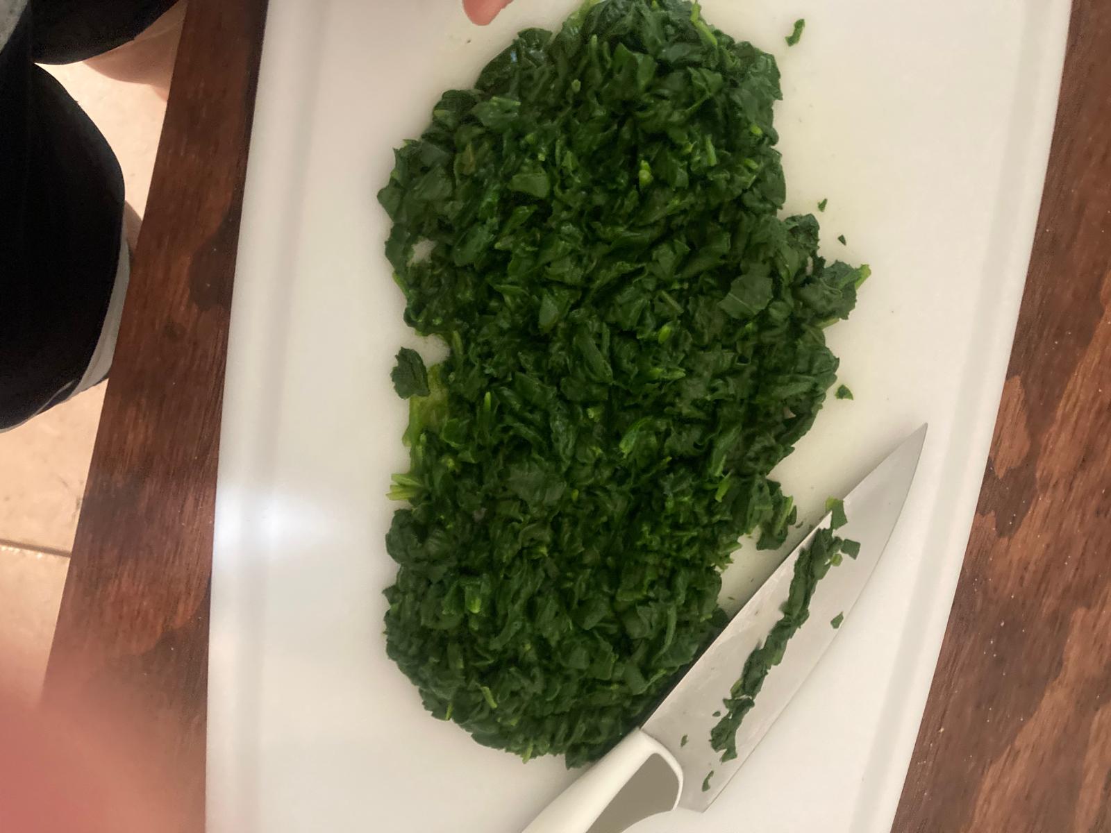 - Escurrimos las espinacas y las cortamos muy fino.
