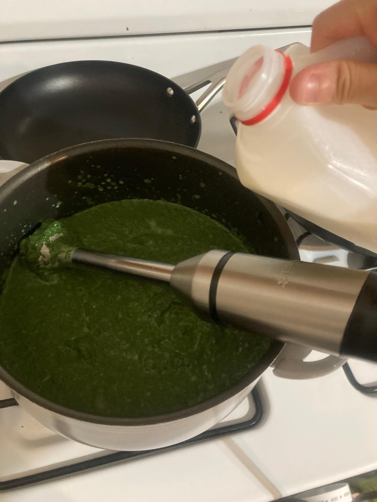 - Batimos con la batidora de mano y aƱadimos leche si es necesario, dependiendo de la consistencia que queramos. Rectificamos de sal.