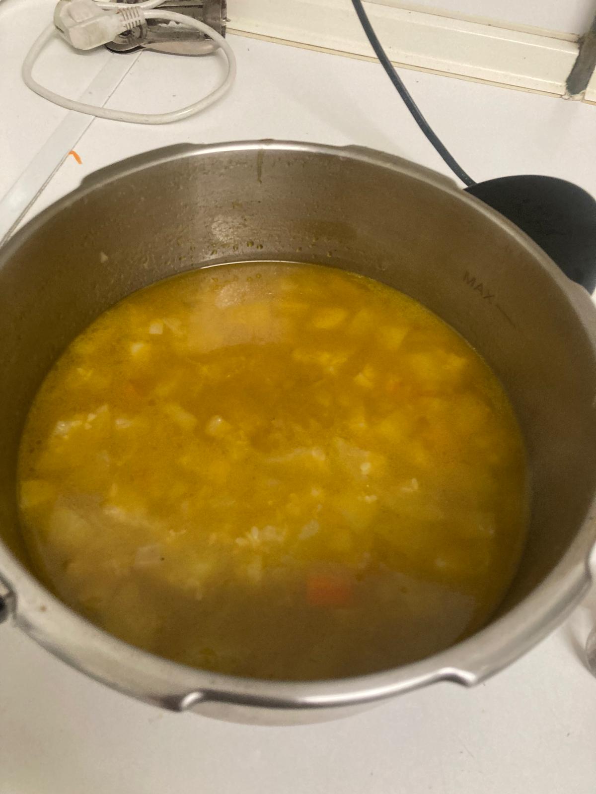 - Enfriamos la olla hasta que se baje el pitorro, la abrimos, y trituramos con una batidora. Rectificamos de sal si es necesario.