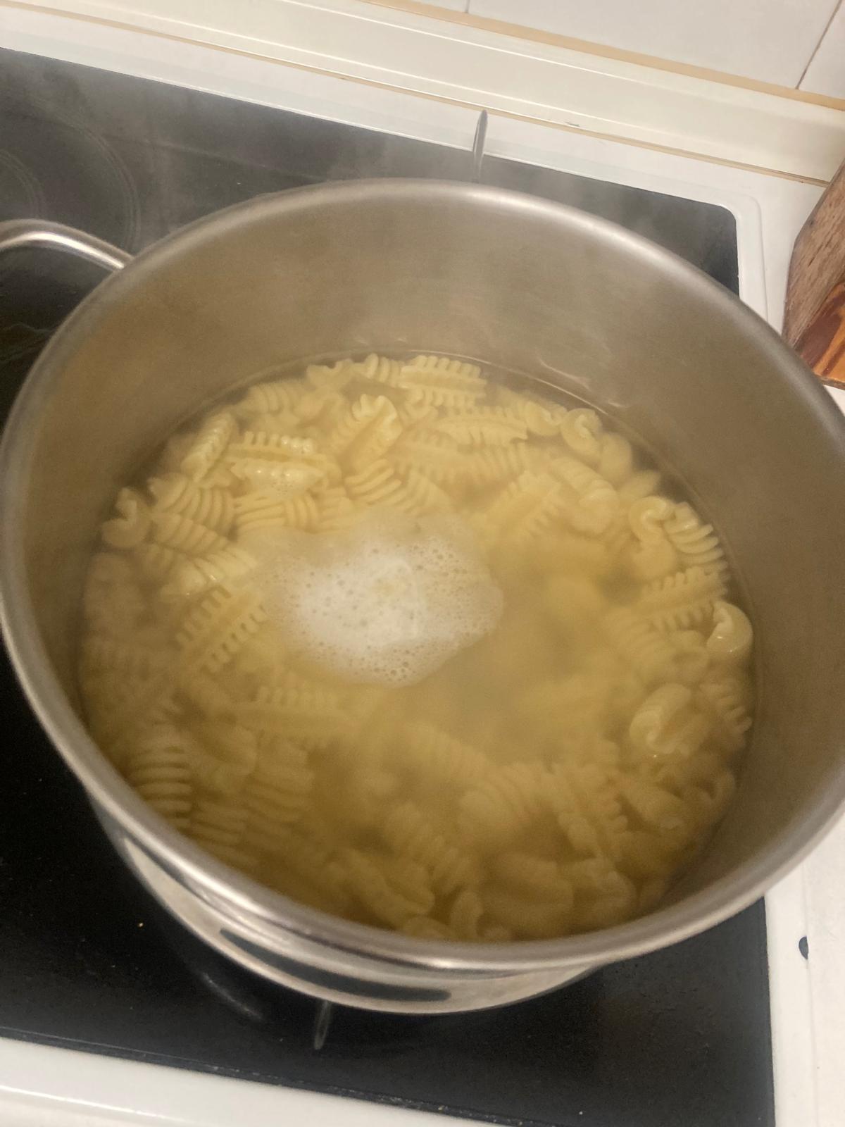 - Ponemos a hervir agua con sal y metemos la pasta hasta que se haga