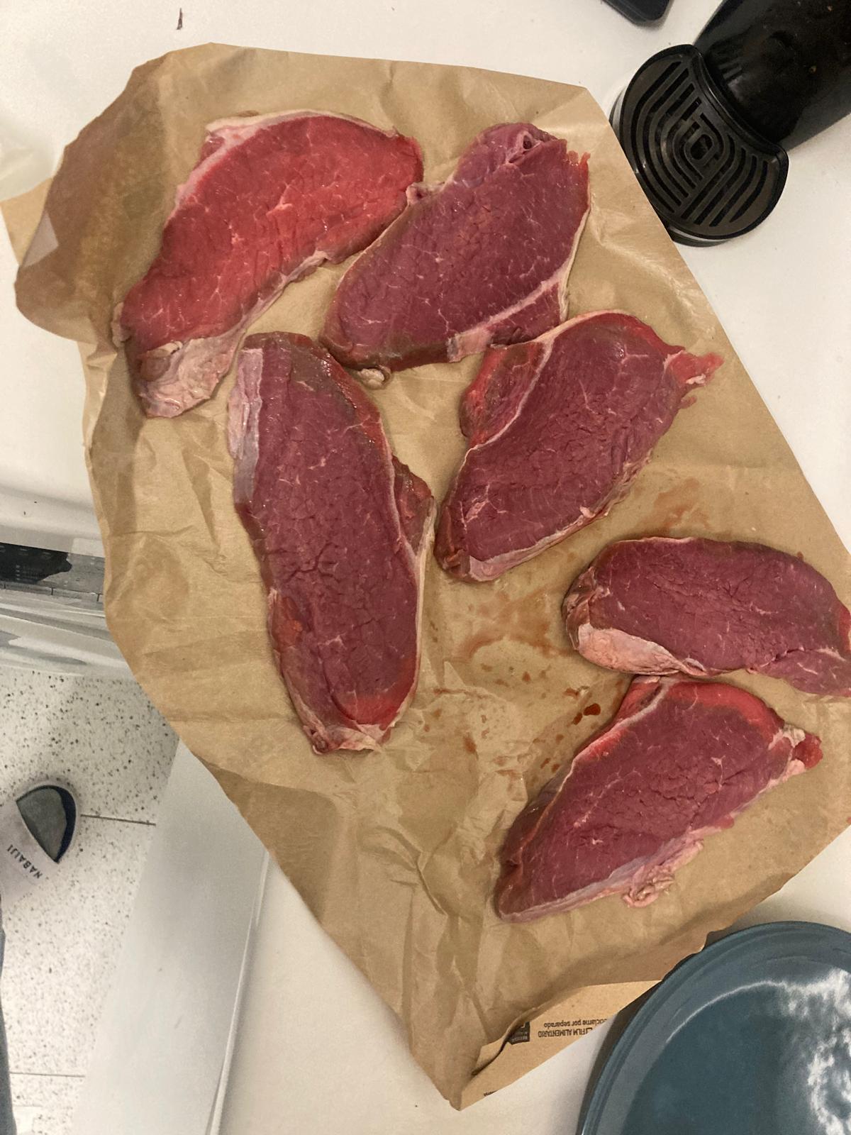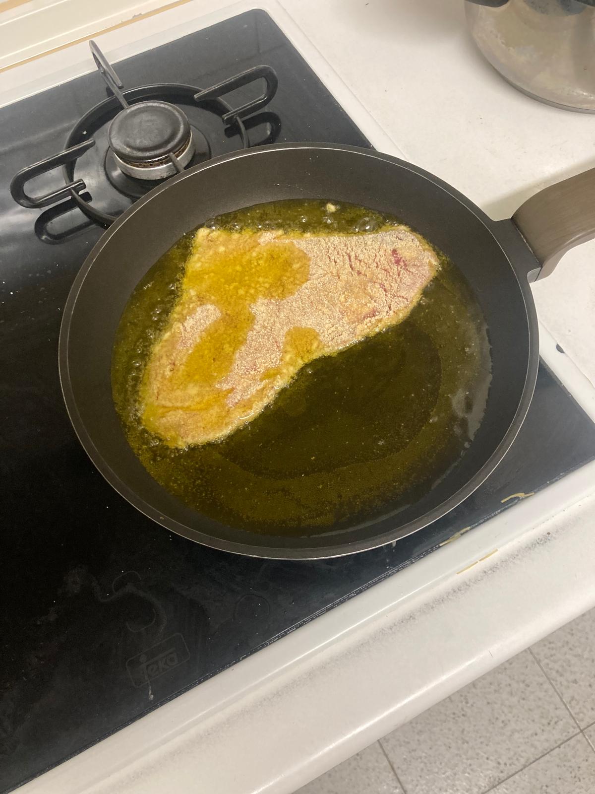 - Poner el aceite en la sartén a fuego medio-alto, y cuando se caliente, meter los filetes. Poco tiempo por cada lado. Bajar el fuego un poco si vemos que se están tostando mucho.