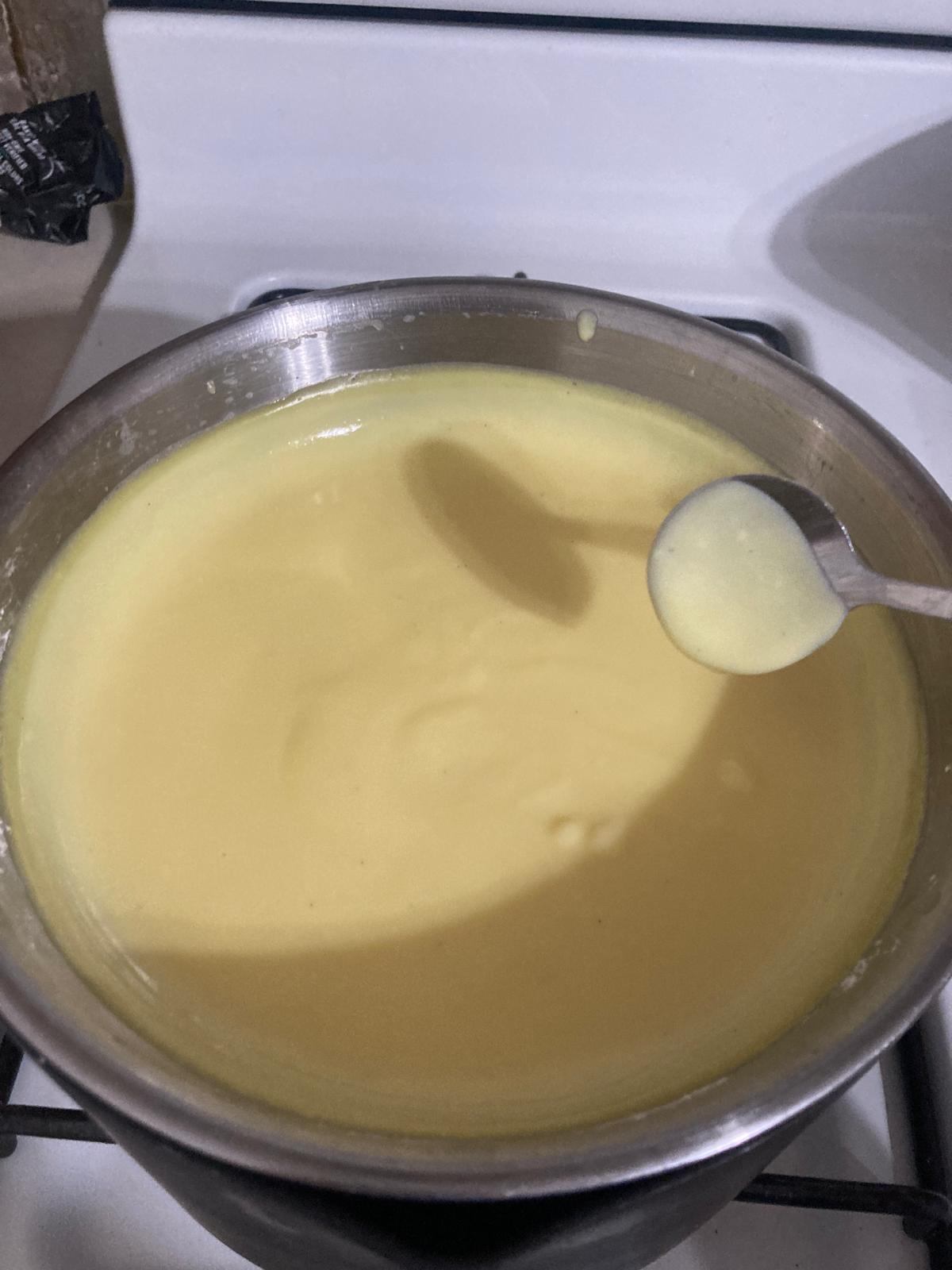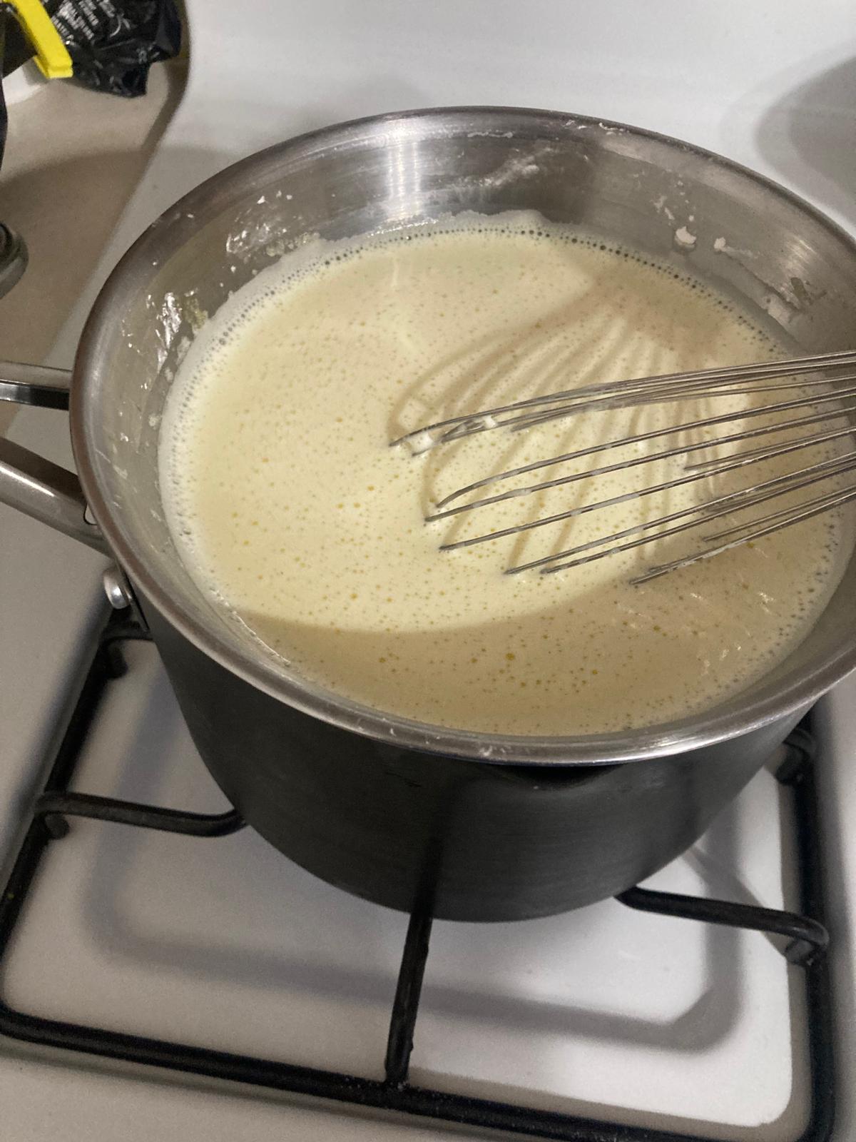 - Ponemos a calentar el recipiente al baño maría: Ponemos agua a hervir en una olla (la maizena empezará a espesar justo antes de le ebullición, a unos 90 grados) y vamos removiendo hasta que espese. Recordar que en caliente la mezcla es más líquida.