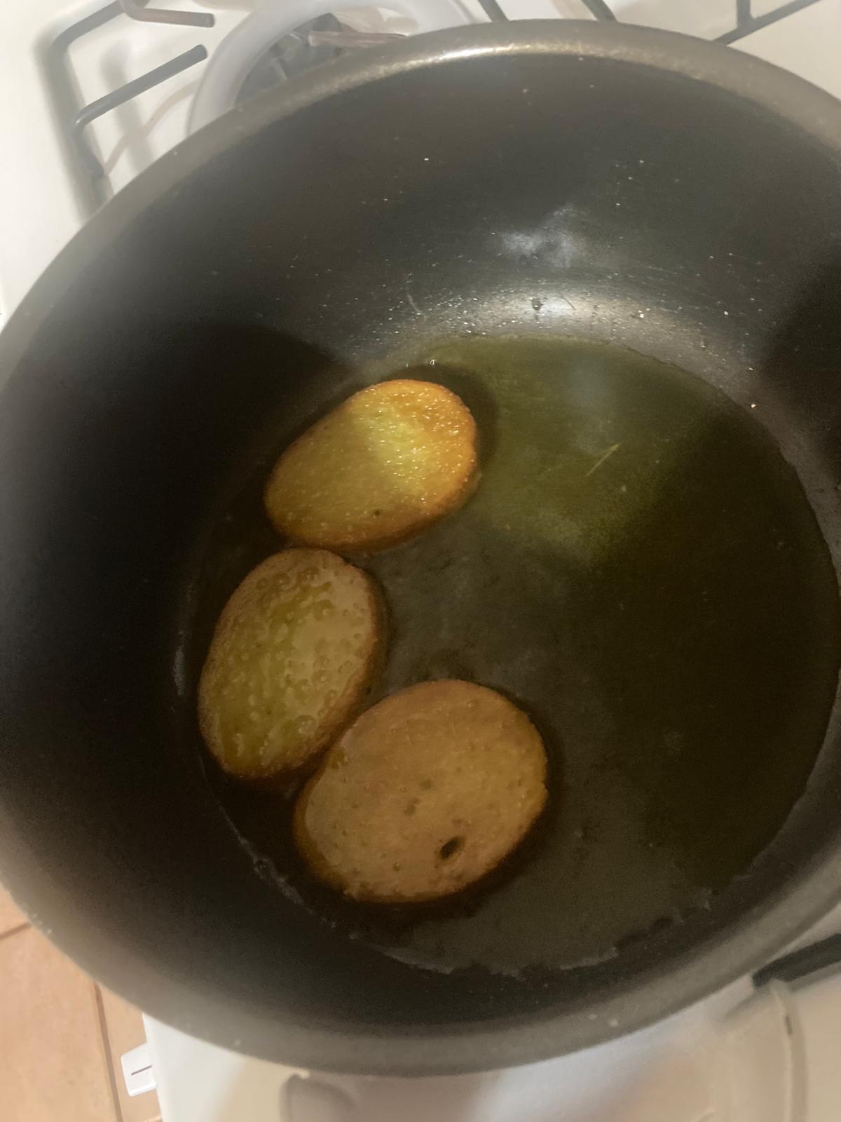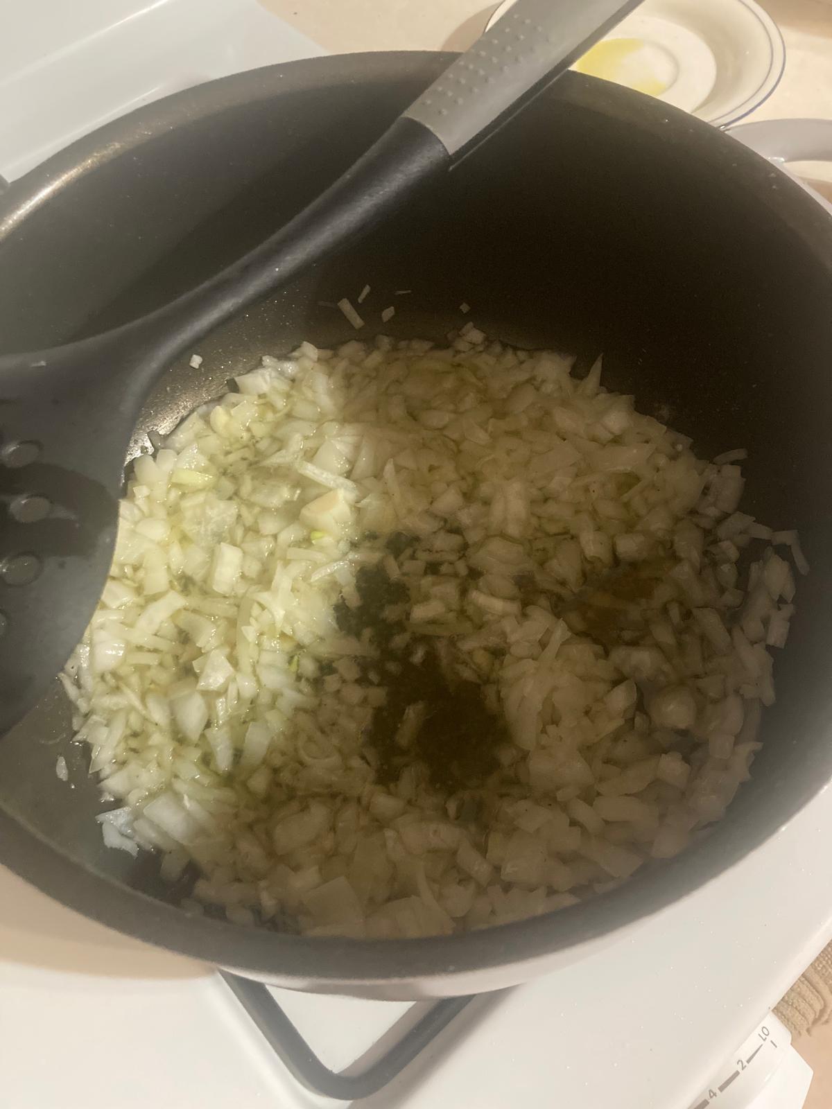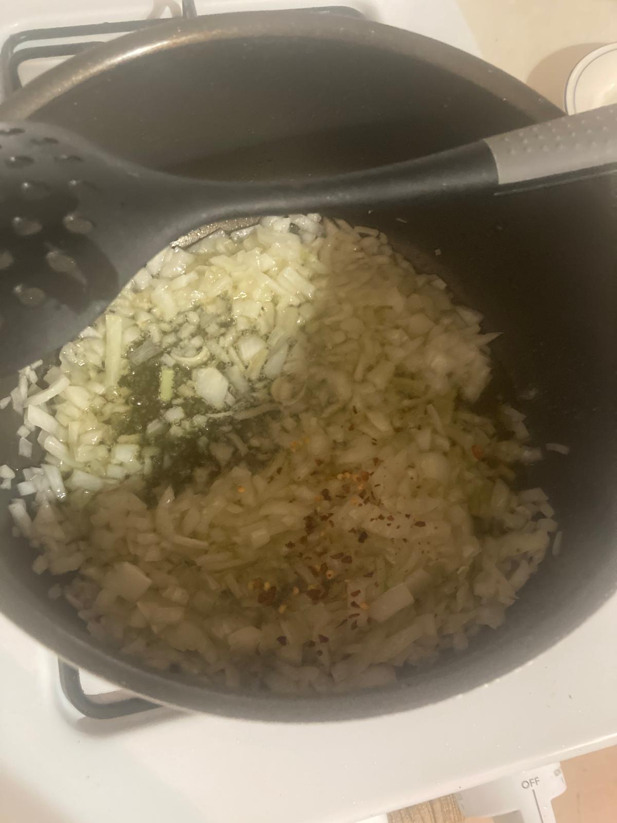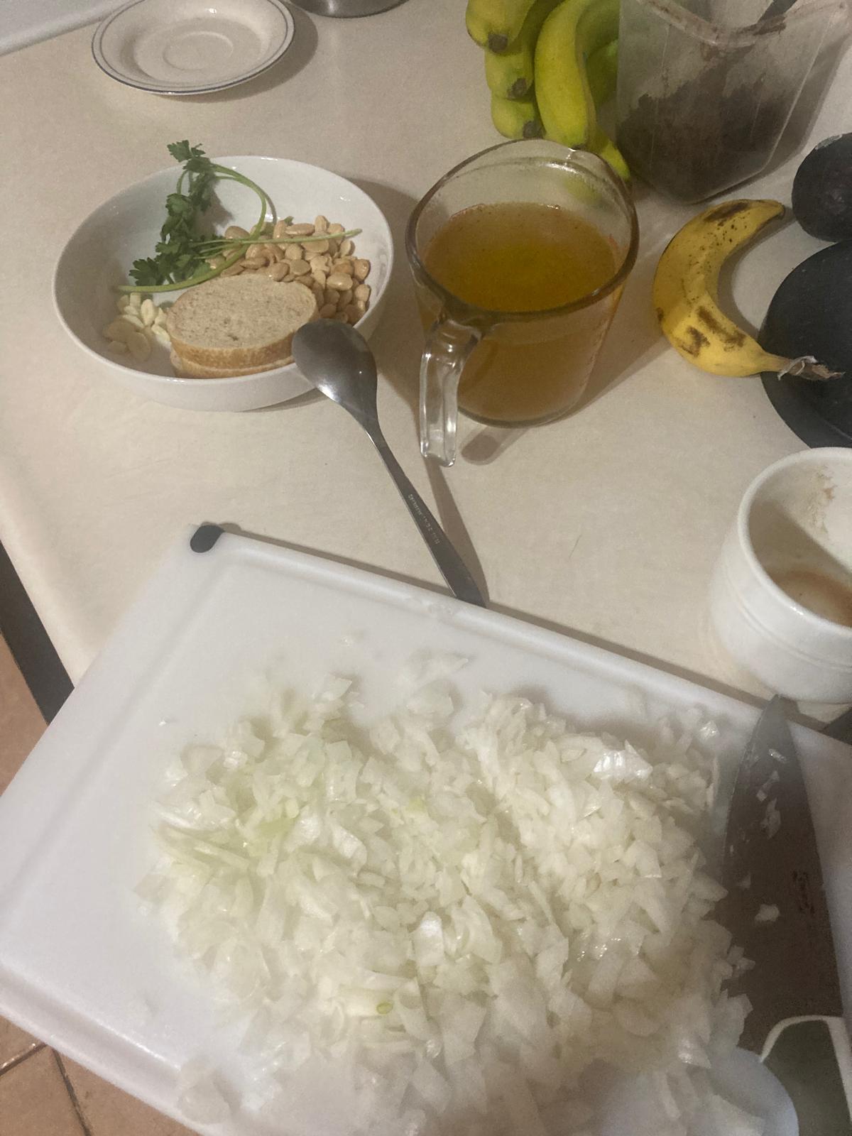 - Picamos la cebolla, y en el mismo aceite que hemos echado antes la sofreímos junto con un poco de cayena.