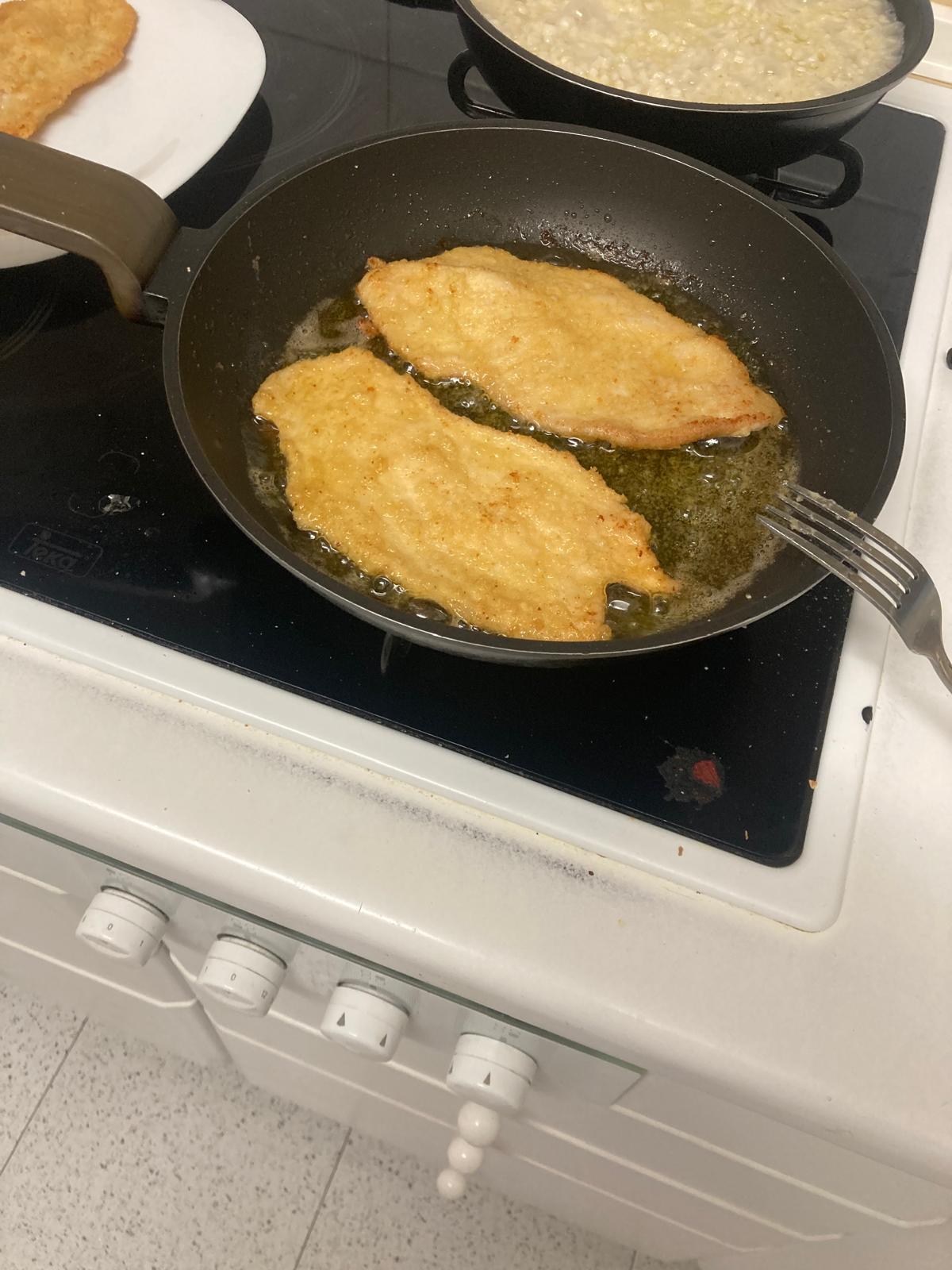- Sacamos cada filete de la mezcla, lo salamos y lo empanamos.