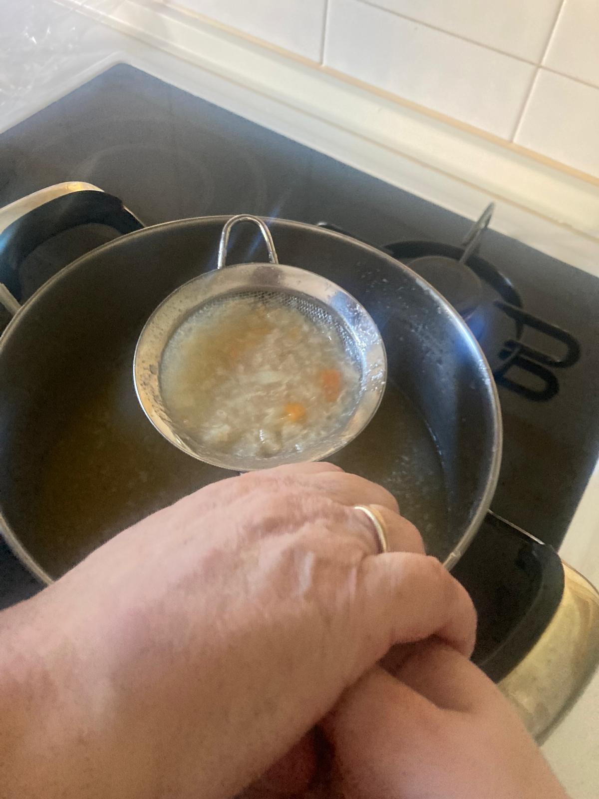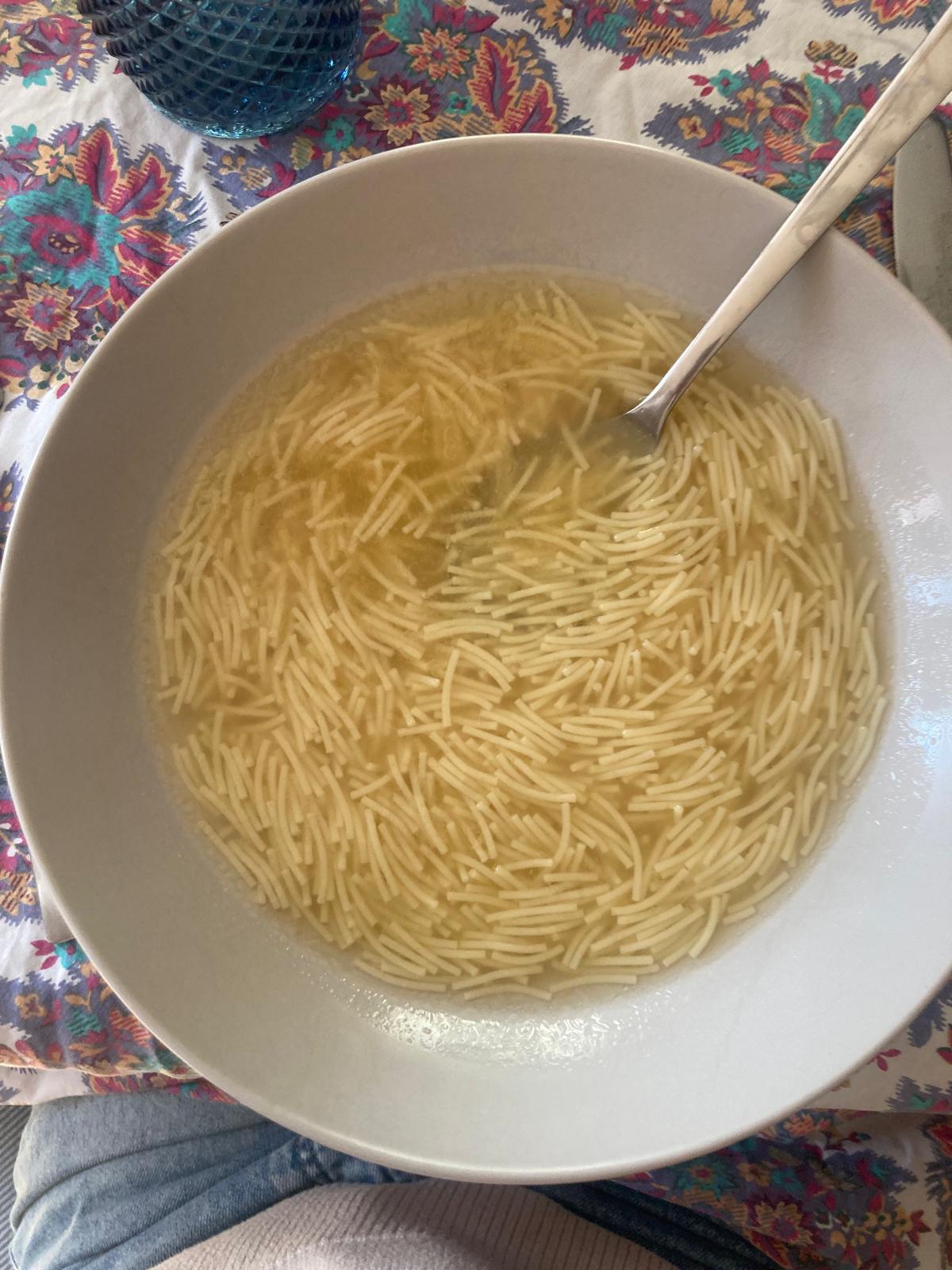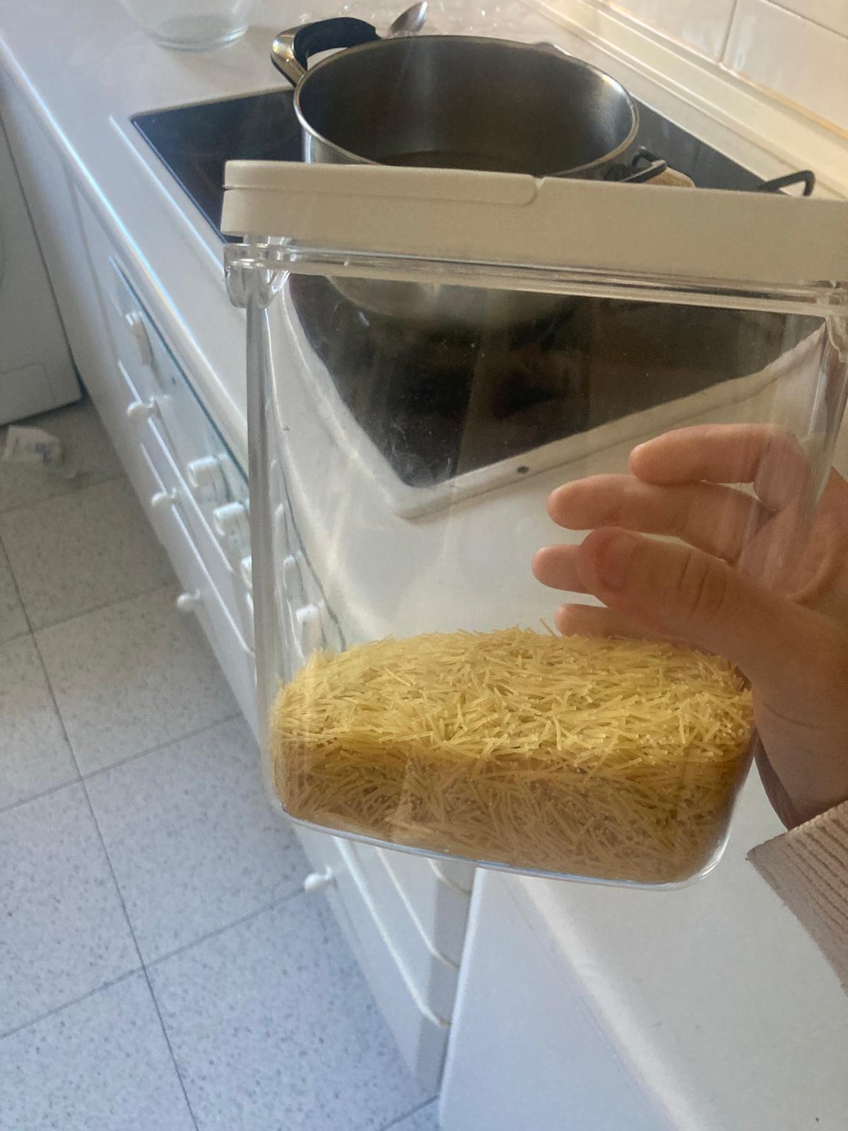 Ponemos a fuego alto y cuando hierva echamos los fideos al gusto y bajamos a fuego medio.Vamos probando hasta que se hagan los fideos y rectificamos de sal si fuera necesario